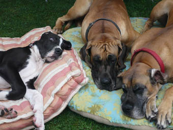 Frieda, Aron, Qvincy mit Biene beim Gassi-gehen