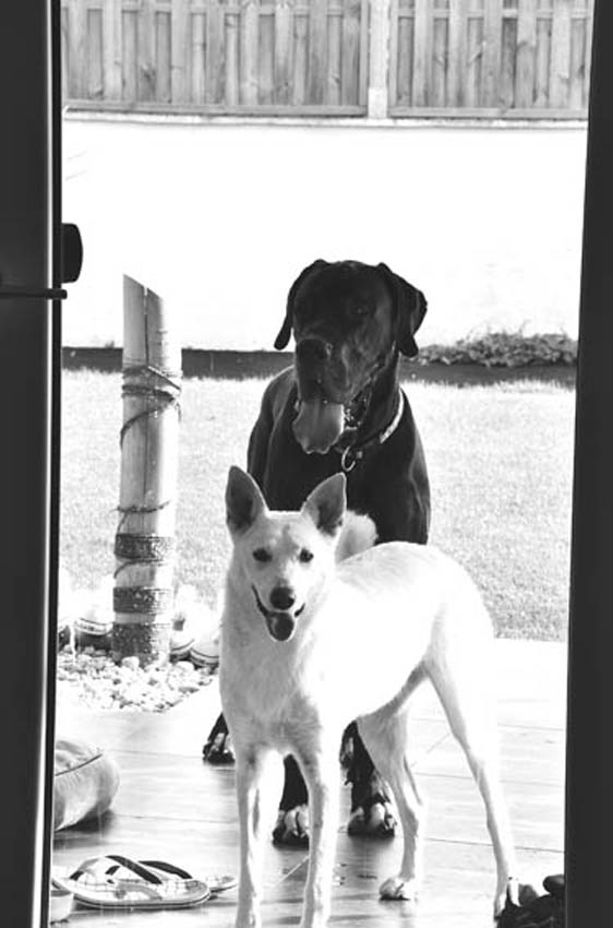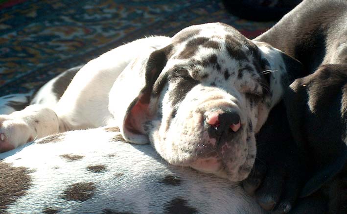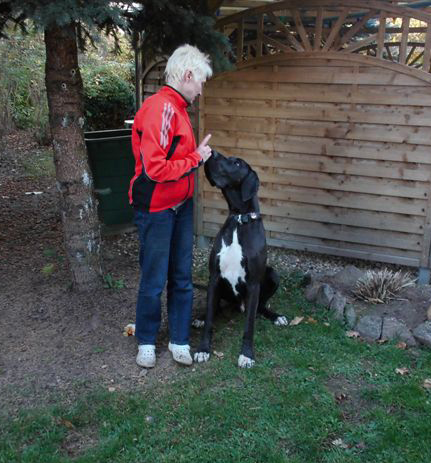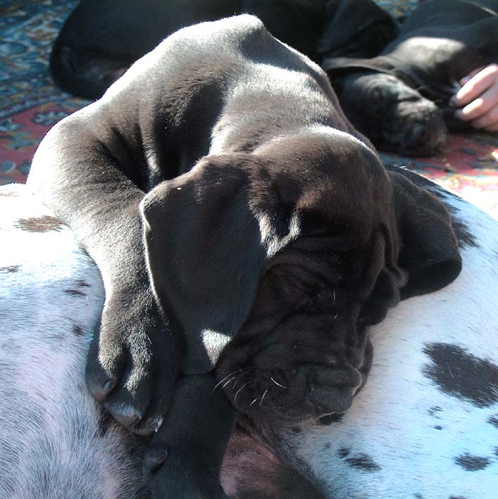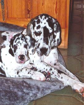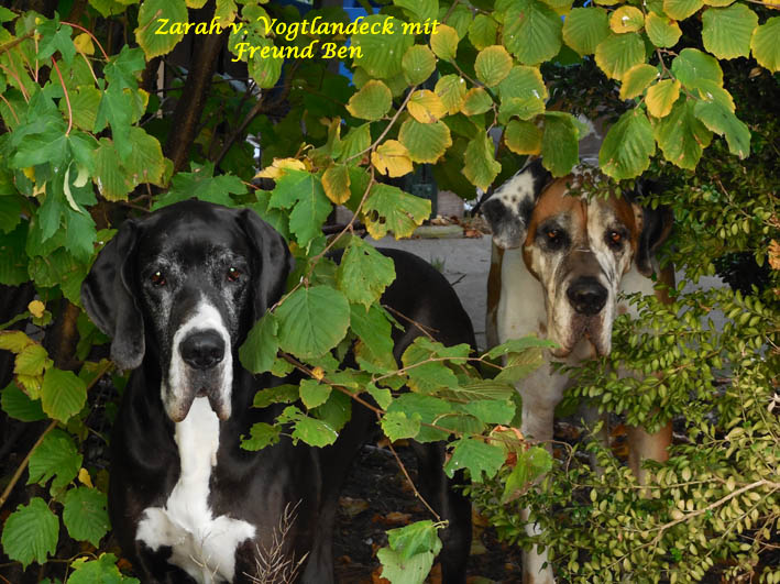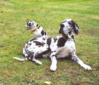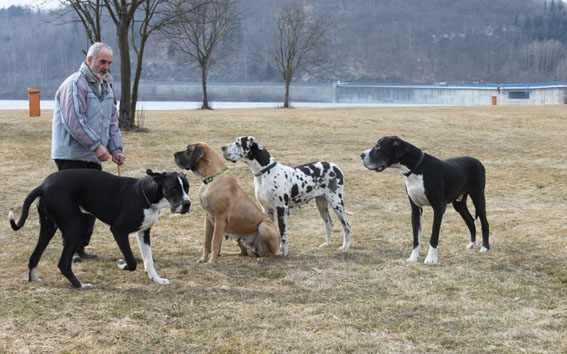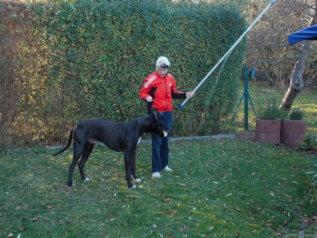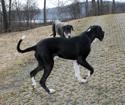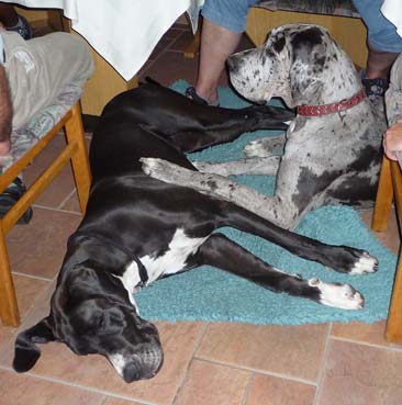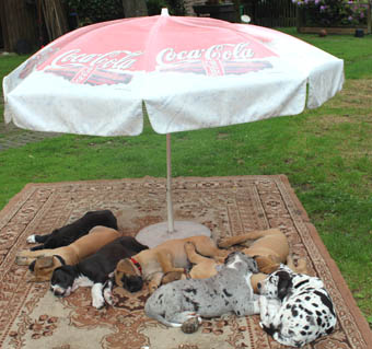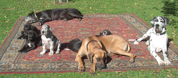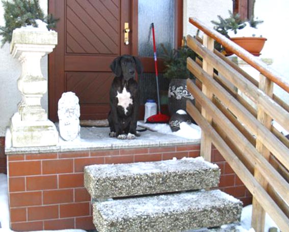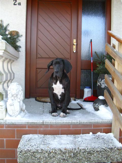 Ich bin Darko und lebe bei Freital mit meinem 12 Jahre alten Doggenrüden - Aron - zusammen, von dem ich viel gelernt habe! Wir haben nun wieder meine Züchter besucht, ich wollte ja meine Halbgeschwister auch wiedersehen. Alle waren freundlich, nur unsere Mama "Emmy" gab mir anfangs zu verstehen, dass ich mich ja anständig ihren Kindern gegenüber aufzuführen habe!