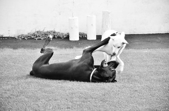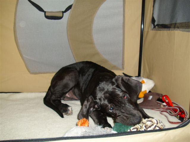 Evita, die hübsche und sehr aufgeweckte Grautigerhündin hat ein vorbildliches Zuhause gefunden. Sie hat nicht nur eine eigene, tolle "Wohnung", sondern auch einen z.Zt. größenmäßig noch etwas überlegenen Spielkamerad. Da sie sich bei uns im Rudel auch immer im Spiel gegen die Übermacht ihrer 7 Brüder durchsetzen mußte, weiß sie, wie man sich durchsetzt.