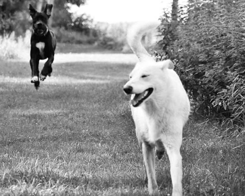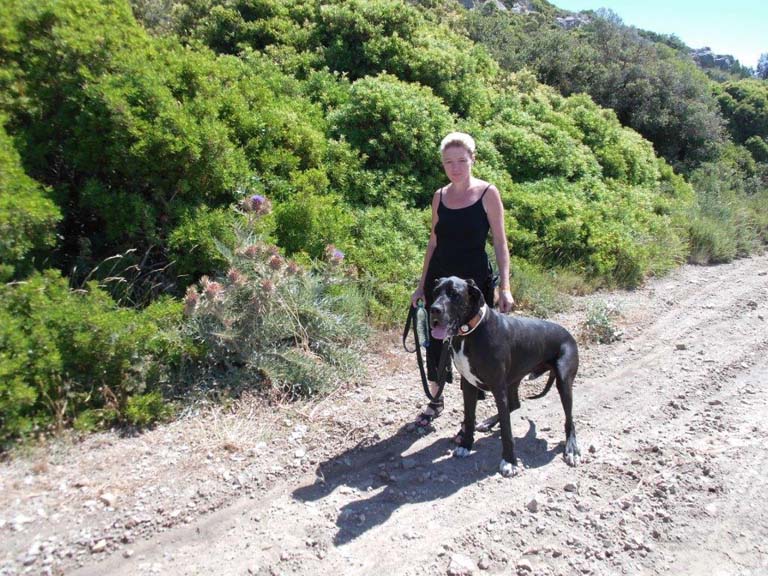 Ed mit Conny beim Spaziergang - er ist ein ganz lieber Bub´, der tagtäglich auf unseren Spaziergängen im sportlichen Wettkampf mit Capone seine Kräfte mißt, was zur körperlichen Fitness in großem Maße beiträgt. Dass Esmee´ immer mit von der Partie ist, brauche ich nicht zu erwähnen.