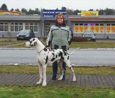Eddy, ein starkknochiger, kräftiger Rüde wohnt in Bayern bei doggenerfahrenen Freunden. Wir freuen uns sehr, dass er zum OG-Wettstreit der LG Bayern Bester Rüde der Jugendklasse wurde - Glückwunsch!! Hier zur Ausstellung in Wutha Farnroda, wo er SG 1 bekam.