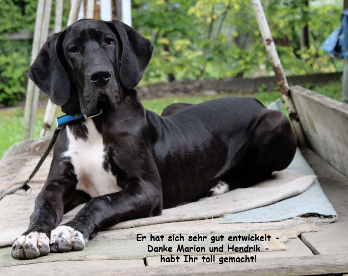 Enox Nelson hat sich zu einem beeindruckenden, sehr schönen und kräftigen Rüden entwickelt. Es ist eine Freude für uns, diese Fotos zu sehen und wir danken Susanne und Frank, dass sie a l l e s bisher so toll hinbekommen haben!