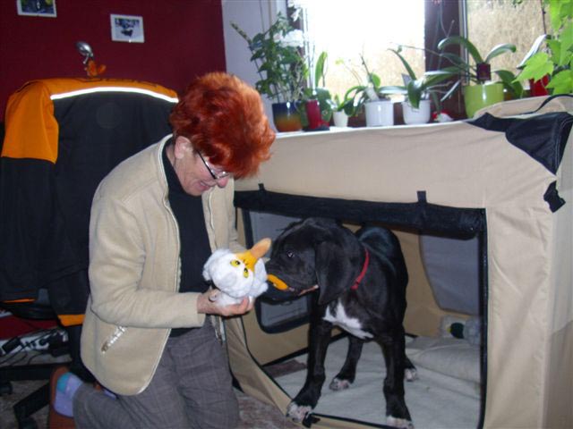 Wir statteten meinen Züchtern am Wochenende einen Besuch ab - meine Besitzer wollten wissen, ob ich eine gute Entwicklung genommen habe und ...na ja, wir wollten auch unbedingt "Babys gucken"!!! Meine Züchter sind mit mir sehr zufrieden. Ich bin zwar nicht der Größte, aber anatomisch ohne Tadel und mein toller Kopf!!! Meine tollen Augen!!! Sie sind schlichtweg hin und weg von mir. Ich bin ja auch erst 1 Jahr alt und mein Papa "Chester" brauchte fast 3 Jahre, um ein richtig kräftige Mann zu werden. Na ja...die Babys waren einfach bezaubernd, super interessant und für mich, wie auch die Babys eine bleibende, sehr positive Erfahrung.