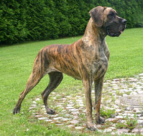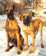 Zucht - Gelb und Gestromt - ab 1975 -Vorwiegend Anpaarung von Fremdblut- Rüden mit einem daraus resultierenden Inzuchtkoeffizient von Null.Auch in diesem Farbschlag waren alle Zuchthunde vom Vogtlandeck HD-frei. Ich möchte an dieser Stelle nochmals hervorheben, dass die Kriterien, der für die Zucht vorgesehenen Doggen, wesentlich strenger und konsequenter festgelegt waren als heute im DDC. Auf Grund der Tatsache, dass nur in ganz geringer Zahl Doggen, die mit HD C befundet wurden, für die Zucht Verwendung fanden, war der Zuchtbestand in der DDR nur minimal mit HD belastet, was man heute gern negiert. Auch unterstellt man gern den damaligen Tierärzten, dass sie weder richtig röntgen, noch richtig auswerten konnten. Sehr wertvoll für die Zucht waren die jährlichen Nachzuchtbeurteilungen ganzer Würfe. Dort konnte man an den Welpen im Alter von ca. 7 bis 9 Monaten sehr gut beurteilen, ob die Eltern harmonierten, ob es wiederkehrende genetisch veranlagte Fehler gab. Sehr schnell konnte man hier Deckrüden herausfiltern, deren Nachzucht mit verschiedenen Hündinnen gleiche genetische Fehler aufwiesen. So konnte reagiert, weiterer Schaden für die Zucht abgewendet werden und dieser Rüde wurde für die Zucht gesperrt. Eine solche Handlungsweise wäre heute im DDC weder machbar noch durchsetzbar! Im Gegensatz zu unserer Gefleckt-Schwarz-Zucht können wir im Gelb-Gestromten- Farbschlag leider keine so nachhaltige Kontinuität aufweisen. Die Tochter von "Maxi v. Vogtlandeck" - "Debby" sollte als Zuchthündin bei uns bleiben. Leider biß diese Hündin mit einem Schneidezahn vor und wir verkauften sie Freunden als Liebhaberhund. Damit endete auch unsere Vogtlandeck-Linie. Erst die Hündin "Qvinta Rot Traum" brachte die Voraussetzungen mit, eine neue Linie aufzubauen. Sie hatte den absoluten Vorteil, dass sie mütterlicherseits aus der Ukraine stammt. Vater ist ein deutscher Rüde, welcher nur diesen einen Deckakt vollzog. Vom Phänotyp und Genotyp konnten wir keine bessere Hündin finden, die eine neue Vogtlandeck-Linie in diesem Farbschlag begründete. Alle zu DDR-Zeiten geröntgten "Vogtlandeck-Doggen" waren HD 0(A), weshalb bei diesen Ahnen keine HD-Befunde stehen | |