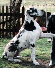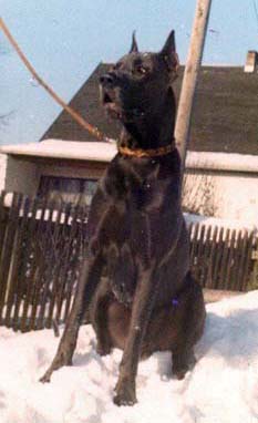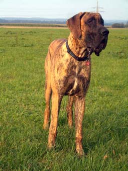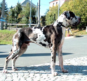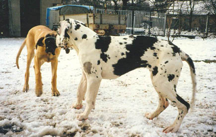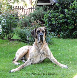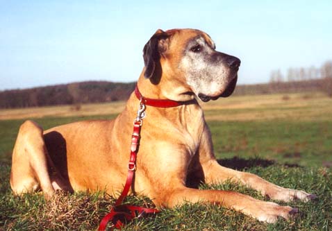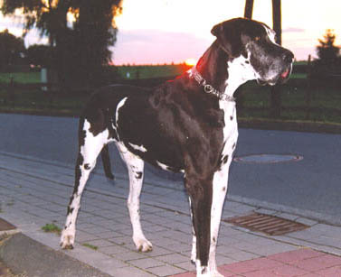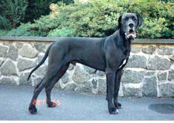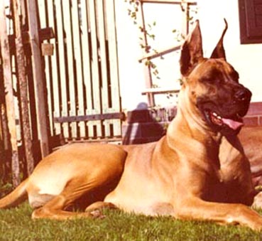 Bis zum Zusammenschluß der Spezialzuchtgemeinschaft Deutsche Doggen der DDR mit dem DDC 1888 e.V. hatte die Regelung Bestand, dass eine Hündin nur 6 Welpen aufziehen durfte. Leider sind meine Aufzeichnungen aus dieser Zeit nicht vollständig, was Todesursache und Fotos betrifft. Eines weiß ich sicher, keiner der Doggen unseres 1. Alphabetes starb an Krebs. und z.B. Kreuzbandriß, Nickhautknorpeldrehung und Knickruten waren für uns Fremdwörter. Auch wenn wir von vielen Züchtern aus Westdeutschland wegen unserer sehr kleinen Doggenpopulation bedauert wurden, waren die DDR-Doggen wesentlich erb-gesünder und abgehärteter wohl auch darin begründet, dass die Haltungs- und Aufzuchtbedingungen "hundgerechter" waren und vor allem Wohnungsaufzucht berechtigt verboten war, wozu ich auch heute noch stehe.