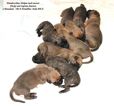 gest.: alle Welpen erreichten das 8. Lebensj.ca. 9 Jahre |