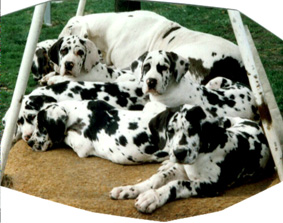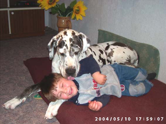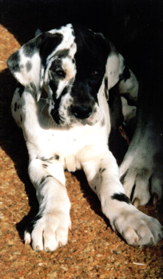 Kimba hatte eine erfolgreiche Ausstellungslaufbahn - mehrmals Jugendklasse SG 1 - Jugendsieger - vor sich! Leider biß er sich mit 2 Jahren einen P 2 - Zahn aus, was zwar für die Zucht unerheblich ist, da ihm bereits lange vorher auf der Zuchtzulassung ein vollzahniges, korrektes Scherengebiß bescheinigt wurde. Mit der Ausstellung war es aber nun vorbei! Da die meisten Züchter als Deckrüden einen "Champion" bevorzugen, geriet "Kimba" leider in Vergessenheit!