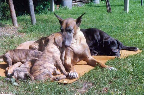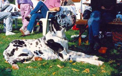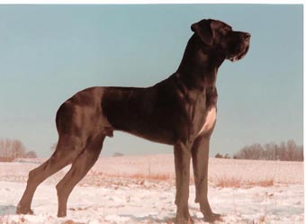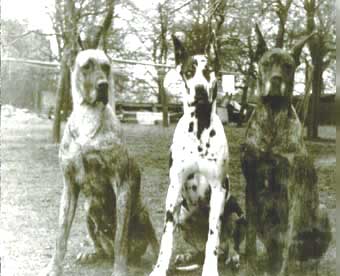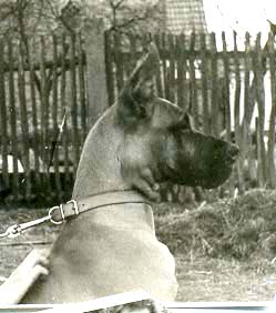 Bis zum Zusammenschluß der Spezialzuchtgemeinschaft Deutsche Doggen der DDR mit dem DDC 1888 e.V. hatte die Regelung Bestand, dass eine Hündin nur 6 Welpen aufziehen durfte. Leider sind meine Aufzeichnungen aus dieser Zeit nicht vollständig, was Todesursache und Fotos betrifft. Eines weiß ich sicher, keiner der Doggen unseres 1. Alphabetes starb an Krebs. und z.B. Kreuzbandriß, Nickhautknorpeldrehung und Knickruten waren für uns Fremdwörter. Auch wenn wir von vielen Züchtern aus Westdeutschland wegen unserer sehr kleinen Doggenpopulation bedauert wurden, waren die DDR-Doggen wesentlich erb-gesünder und abgehärteter wohl auch darin begründet, dass die Haltungs- und Aufzuchtbedingungen "hundgerechter" waren und vor allem Wohnungsaufzucht berechtigt verboten war, wozu ich auch heute noch stehe.